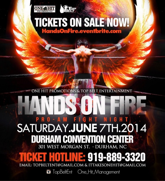 On June 7th, 2014 at 7:00pm at the Durham Convention Center in Downtown Durham, there will be the biggest boxing match to ever come to the Triangle. Presented by One Hit Management and Top Belt Entertainment. Tickets are on sale now, visit handsonfire.eventbrite.com or call the ticket hotline at 919-889-3320. Related Stories: “HANDS ON FIRE” […]
