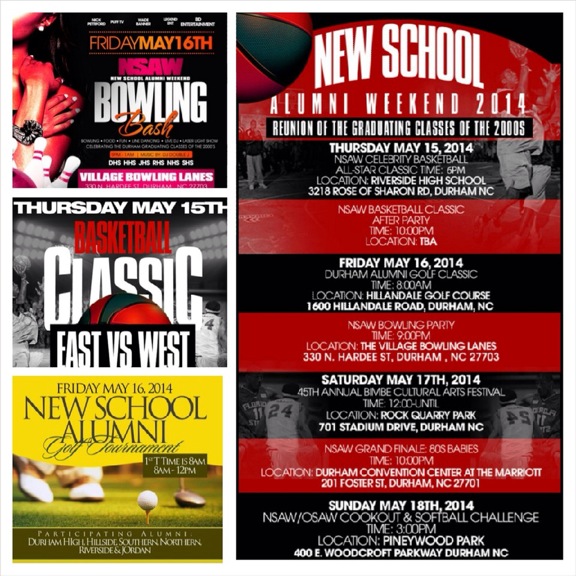 The 1st Annual New School Alumni Weekend is FINALLY here, all graduates from the 2000’s, we are calling you to participate in the events listed below! Thursday, May 15th NSAW Celebrity Basketball Game – Riverside High School Friday, May 16th Durham Alumni Golf Course – Hillandle Gold Course Saturday, May 17th NSAW Bowling Party – […]